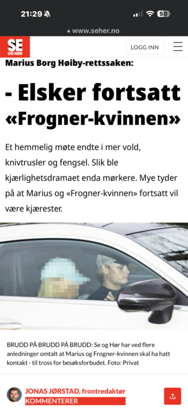 I følge Se og Hør vil Marius og Frogner-kvinnen fortsatt være sammen. Det er komplisert, da hun vitner som fornærmet og han er siktet og varetektsfengslet. Det er sånn sett et kjærlighetsdrama som utspiller seg.